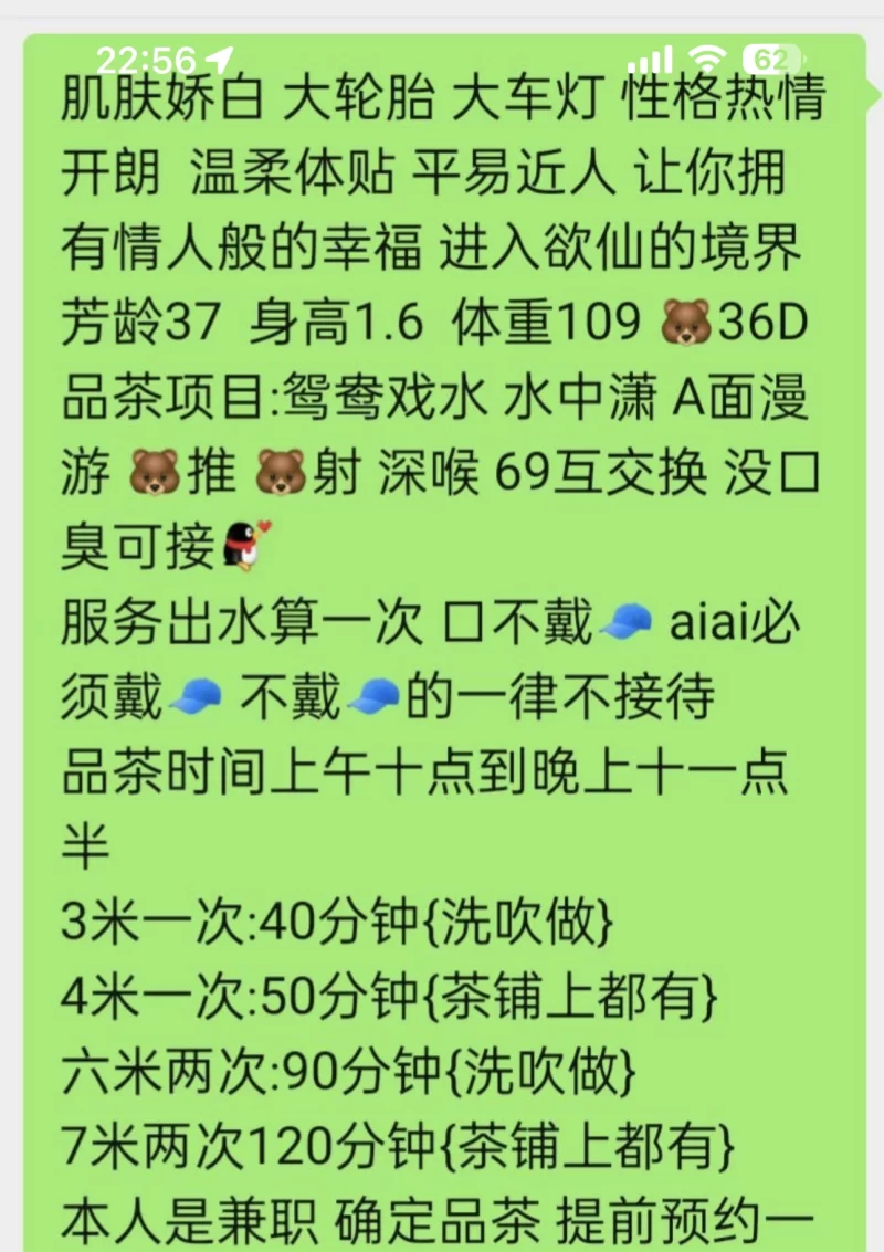 威客管理提示:要求付定金 保证金的,总之提前要钱的都是骗子 威客管理批注:楼主连续4条帖子一样的详细介绍,等于没介绍无奖励! 自己那天和朋友喝完酒,闲来无事看群里有人说话,便看见了她,一打听口碑服务身材都不错就打电话过去了,然后遥控上楼,一进屋里就看见映入眼帘的两个大奶子,当时小狼就控制不住了,脱下裤子就开始干,事后甩了400大洋就走了,妹妹胸很大活很好,